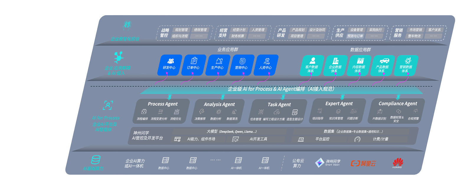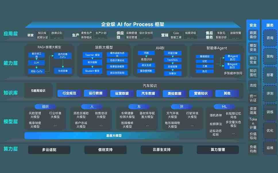 端到端的一站式AI工作空间深度融合了从企业战略规划到日常经营的全流程业务板块,,定向解决车企内部领域多、、、、部门多、、、链条长、、、场景碎片化等难题,,支持车企快速构建以AI为核心的生产力写作体系,,,实现任务执行与AI能力的无缝集成与交互